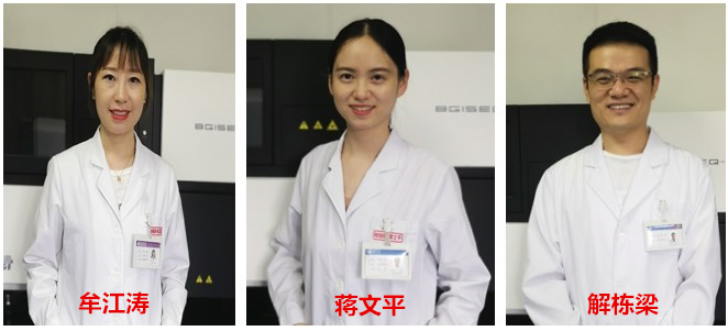 图中三位穿着防护服、戴着防护镜,“全副武装”的工作人员分别是检验科分子组的牟江涛、蒋文平和解栋梁。他们在疫情爆发之初,就投入到核酸检测的一线当中。