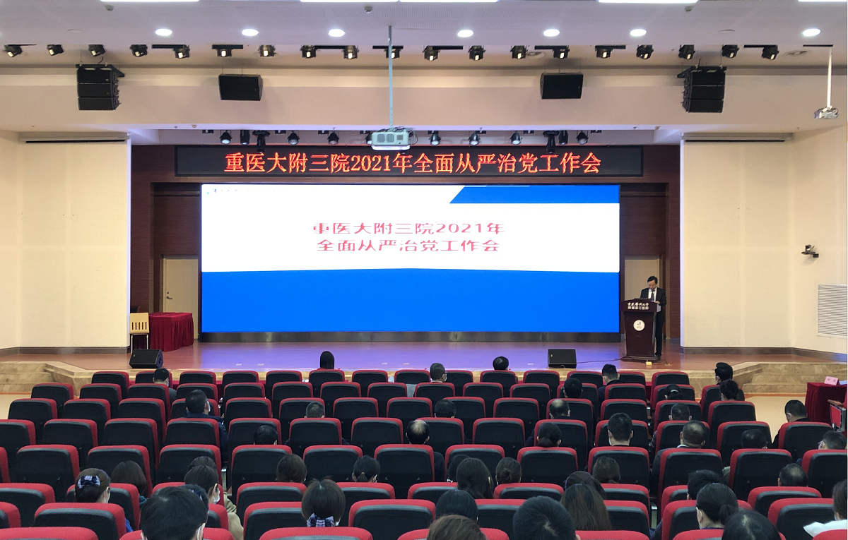 2021-03-08 00:00 3月4日,重医大附三院在学术报告厅召开2021年全面从严治党工作会,学习贯彻习近平总书记在十九届中央纪委五次全会上的重要讲话、十九届中央纪委五次会议和五届市纪委五次全会精神,研判分析新形势、新挑战、新要求,部署2021年医院全面从严治党工作。在家院领导、全体中层干部、各党支部书记及支部委员参会。院长傅仲学主持会议。