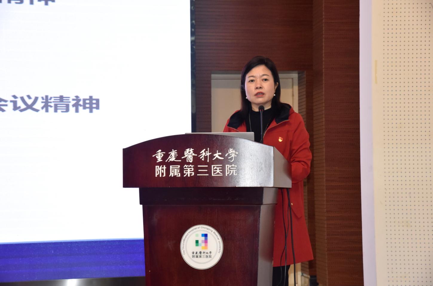 党委副书记、副院长曾燕传达十九届中央纪委五次全会、五届市纪委五次全会和重庆医科大学2021年全面从严治党工作会精神。她指出,过去的一年,面对疫情冲击和外部复杂的形势变化,在党中央的坚强领导下,我院按照上级党委统一部署,认真落实新时代党的建设总要求,扛起主责、抓好主业,全院上下战疫情、创三甲、促发展,党风廉政建设取得新胜利,全面从严治党取得新成效,医院政治生态和文化建设持续好转,较好地完成了2020年初医院确定的“三大中心任务”,医院高质量发展迈上新台阶。