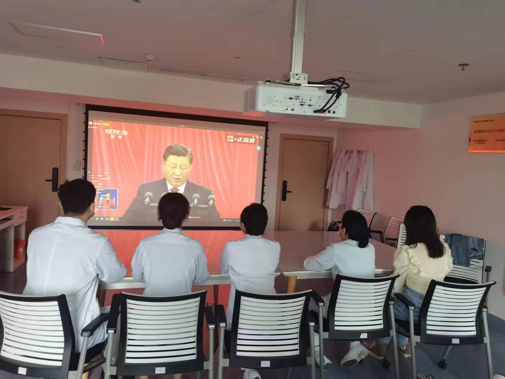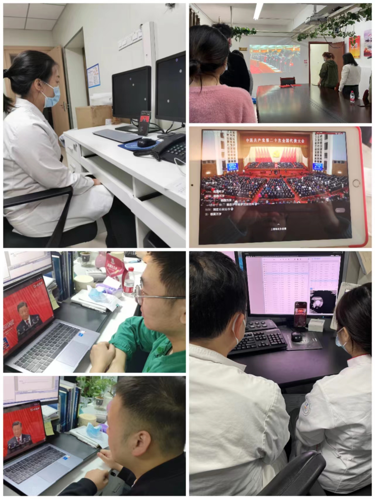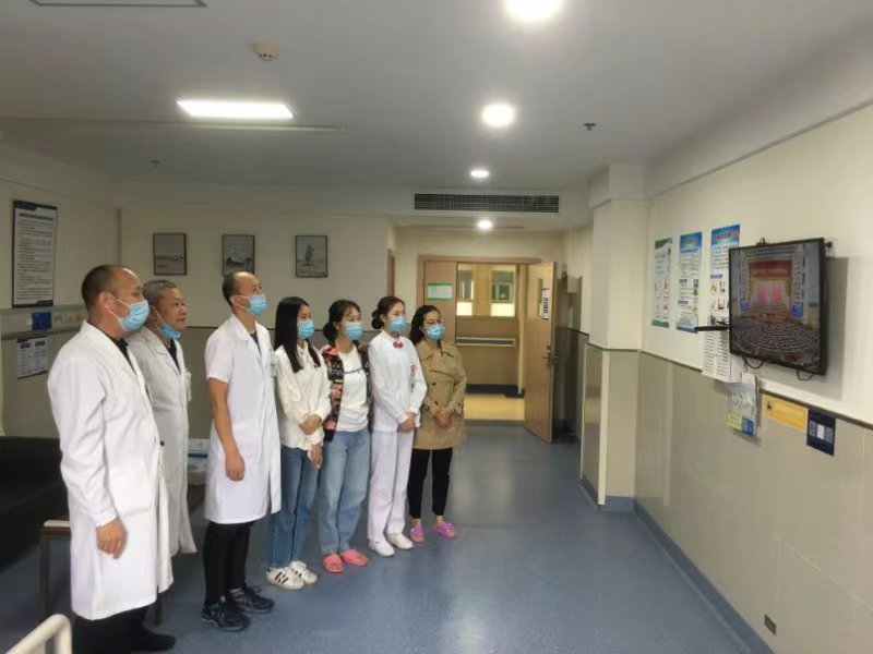 当天上午10时,重医大附三院党政领导班子成员,医院各党支部、部门(科室)的党员及师生员工通过多种途径收看。还有相当一部分同志因工作任务而就近就便和街道或社区工作人员、群众共同收听或收看。