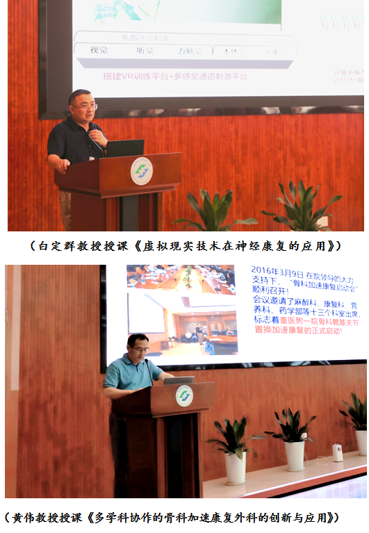 白定群教授讲授的《虚拟现实技术在神经康复的应用》,向同学们介绍了虚拟现实技术结合康复治疗能够给患者带来沉浸式的体验,患者可在更加接近真实的环境中提高训练的主动性,并通过任务导向实现特异性的大脑运动意图刺激响应。