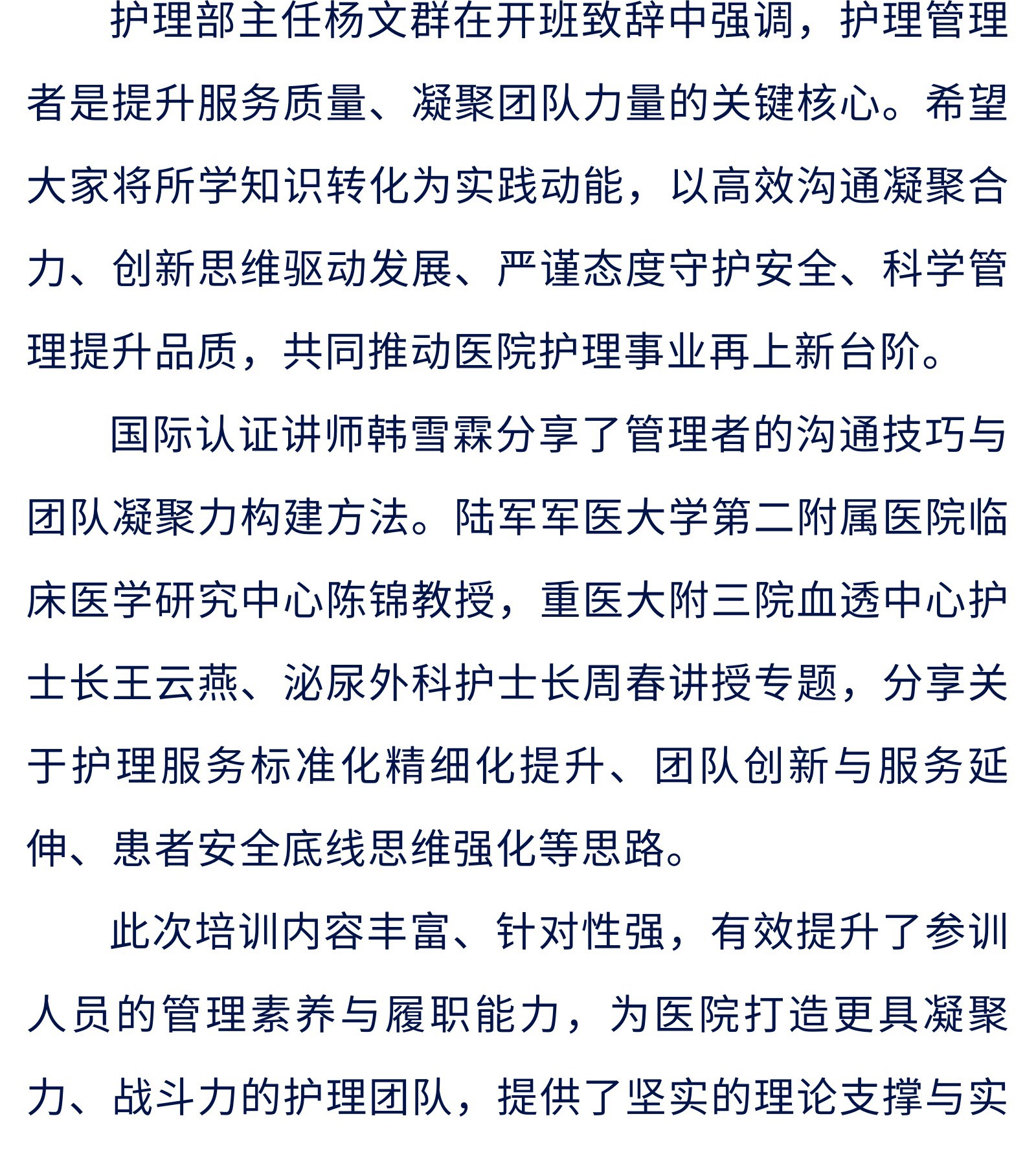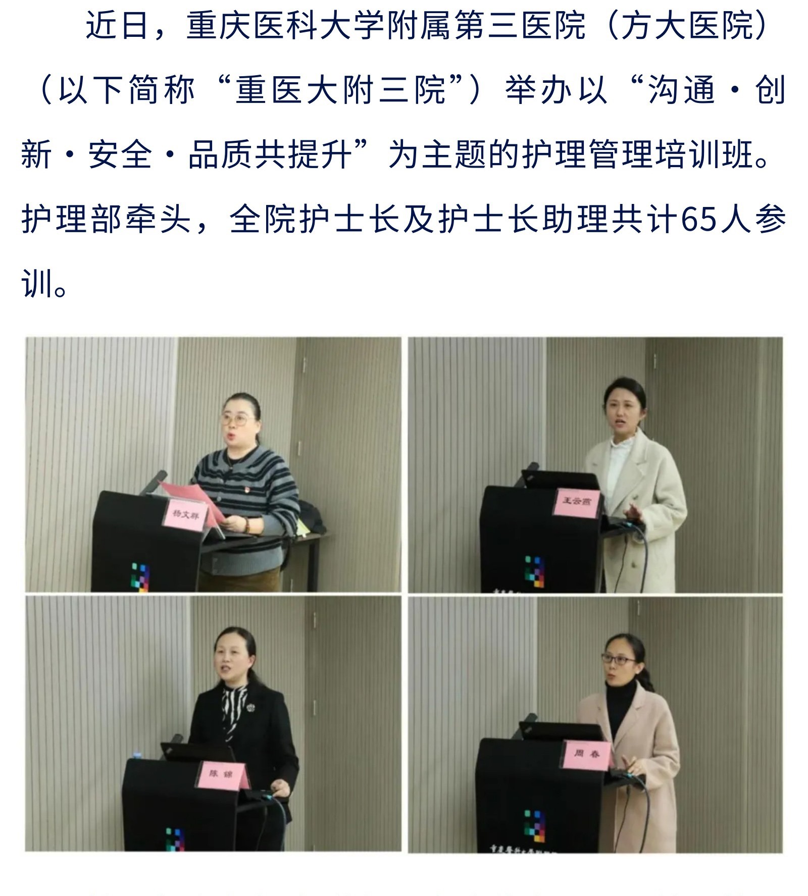 以管理赋能护理 以专业守护品质 ——重医大附三院(方大医院)举办护理管理专题培训班