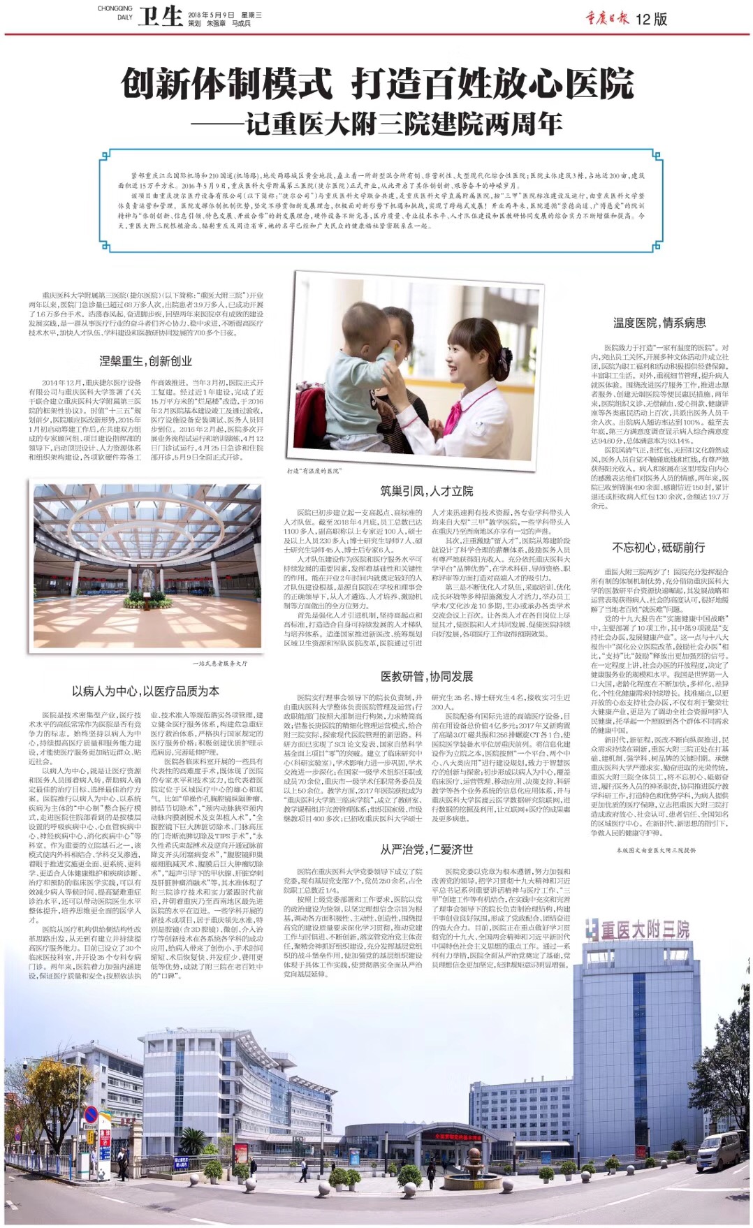 【重庆日报】创新体制模式,打造百姓放心医院——记重医大附三院建院两周年