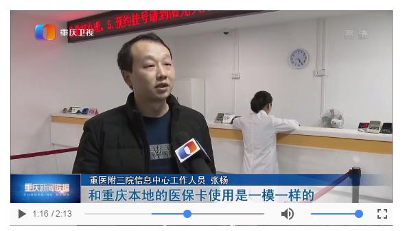 重医附三院信息中心工作人员张杨说:“他的医保卡跟重庆本地的医保卡使用是一模一样的,也不用备案,直接就可以用。”
