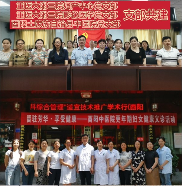 9月15日下午,妇产中心党支部书记易萍教授带队,携支部副书记俞丽丽教授、组织委员周明芳副教授、党员代表唐艳医生、陆敏副护士长及影像医学党支部熊秀勤副主任医师一行,与酉阳土家族苗族自治县中医院开展了形式多样的支部共建交流活动。酉阳土家族苗族自治县中医院祁庆姣副院长、医务科陈红主任、妇产科杨焱主任、内分泌科曾勇主任及部分党员代表参加了此次活动。