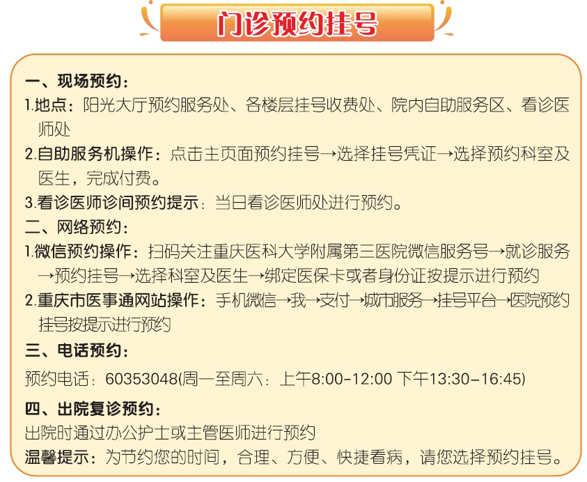 门诊预约挂号(2024年7月版)-就医指南-患者服务-重庆医科大学附属第三医院【官方网站】
