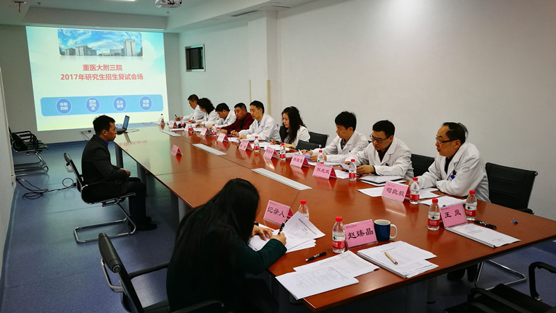 2017-04-12 00:00 2017年是重庆医科大学附属第三医院作为重庆医科大学附属医院首次开展硕士研究生招生工作。院领导高度重视,成立了复试专家小组,以常务副院长严敏教授任组长,党委副书记、副院长曾燕教授任副组长,小组成员包括倪银星、杨聚荣、司良毅、张云东、李为兵、熊光武、闫柏刚、刘松青教授等8名专家。3月23日,我院新增导师均参加了学校2017年研究生复试录取工作会,学习了复试录取基本程序、原则、内容、要求及相关工作纪律。为更好的完成此项工作,我院还专门召开了研究生复试工作筹备会,协调各职能部门各司其职。