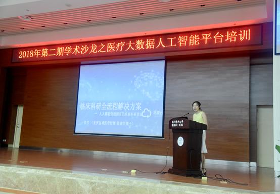 随后,由医渡云公司重庆区域运营经理钟瑜讲授《基于DPAP智能驱动下的真实世界研究解决方案》。钟瑜经理通过文献统计,强调目前国际上的高分SCI表已呈现出“大量本、长时程、多标准立体评价、多数据源整合”的特征。在这样背景下,她结合自身早期的临床医师工作经历,阐述了一名医疗工作者,通过借助DPAP平台,是如何从繁忙的临床工作中成功抽身,开展科学研究的经历。
