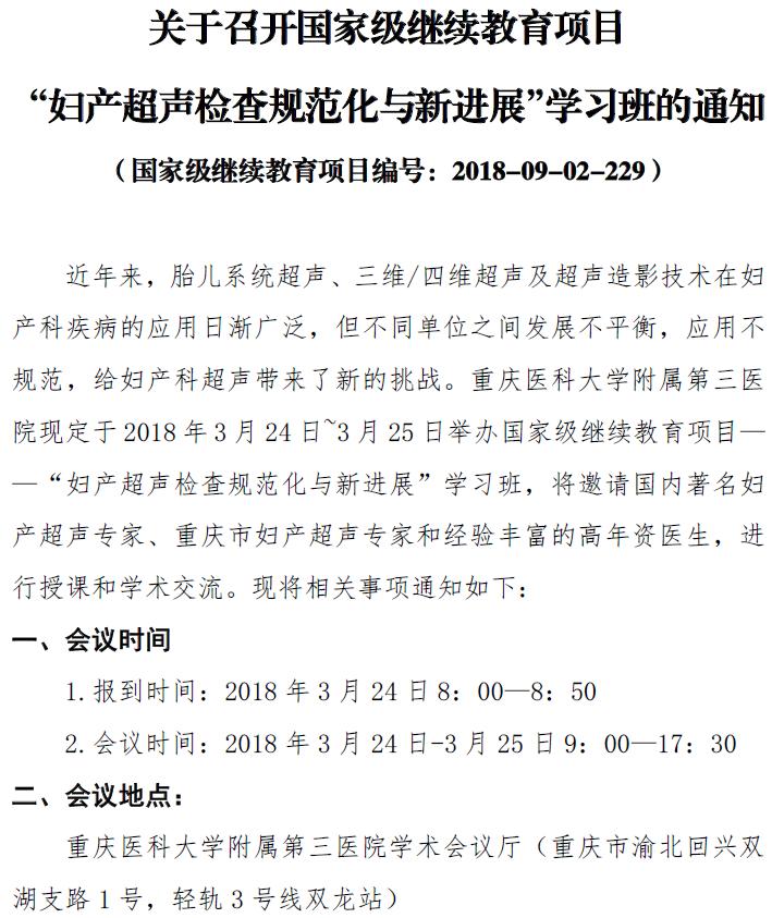 【学术会议】关于召开国家级继续教育项目“妇产超声检查规范化与新进展”学习班的通知