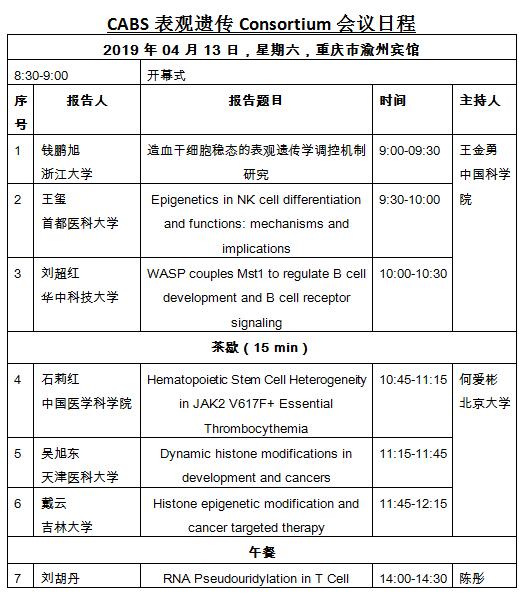 【学术会议通知】2019CABS表观遗传Consortium学术会议邀请函与会议日程