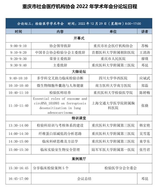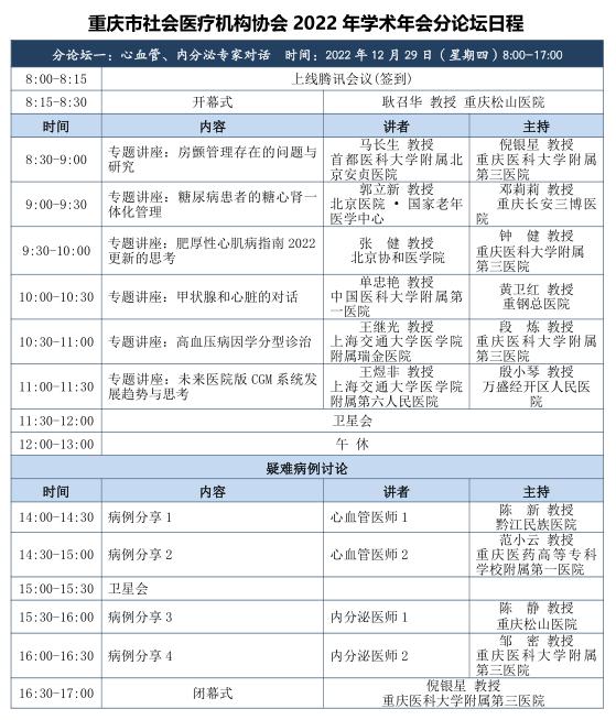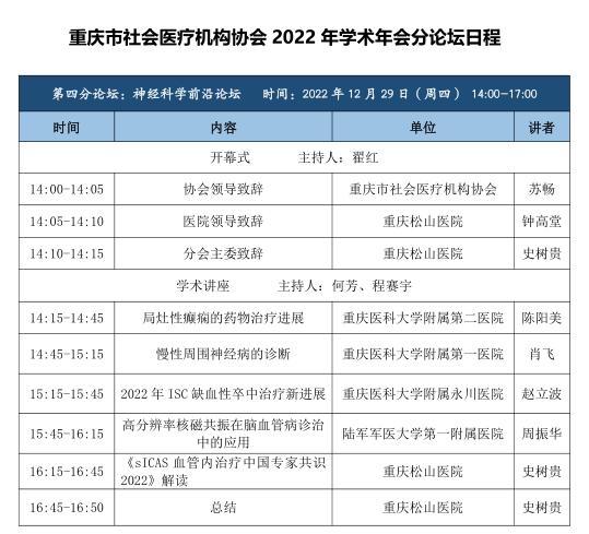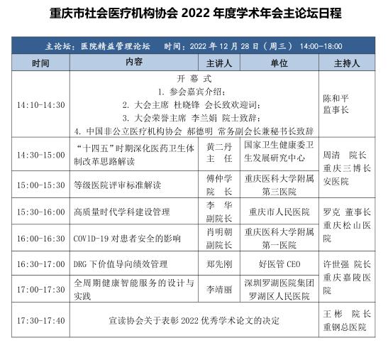 【学术活动预告】12月28-29 日召开重庆市社会医疗机构协会2022年度学术年会